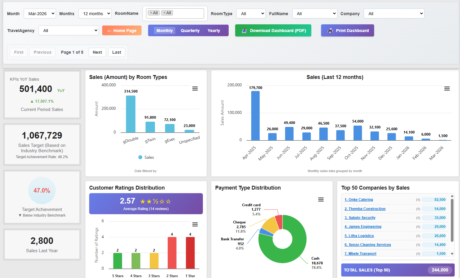 Generate detailed reports on occupancy, revenue, bookings, and performance to support informed decision-making and business growth.